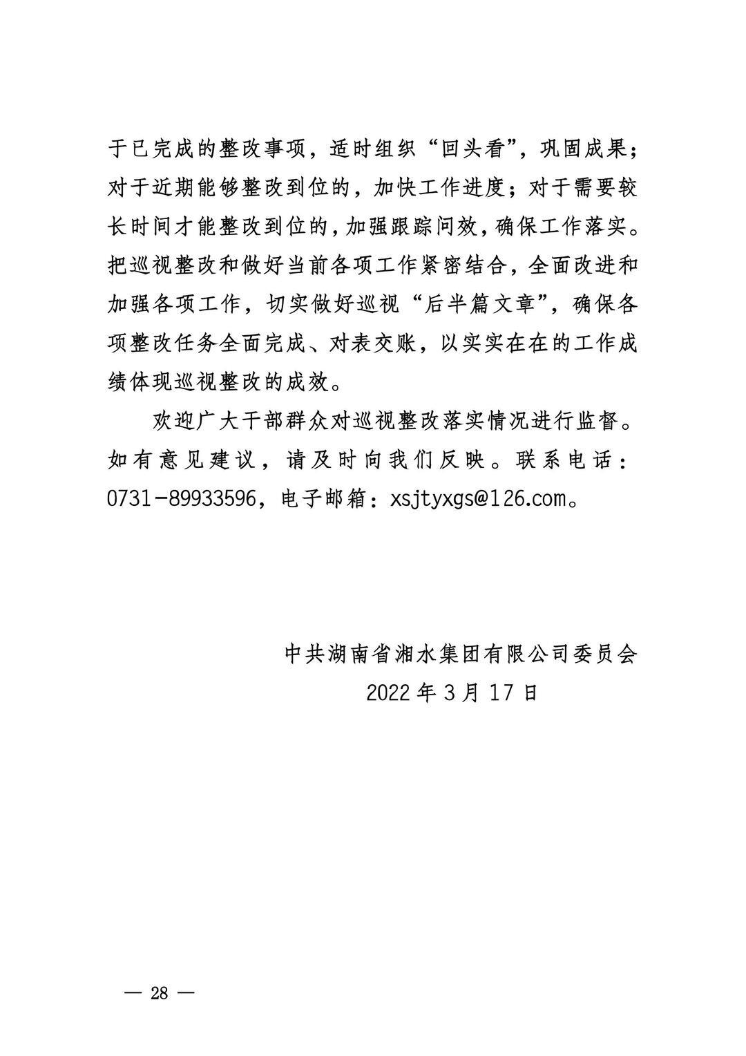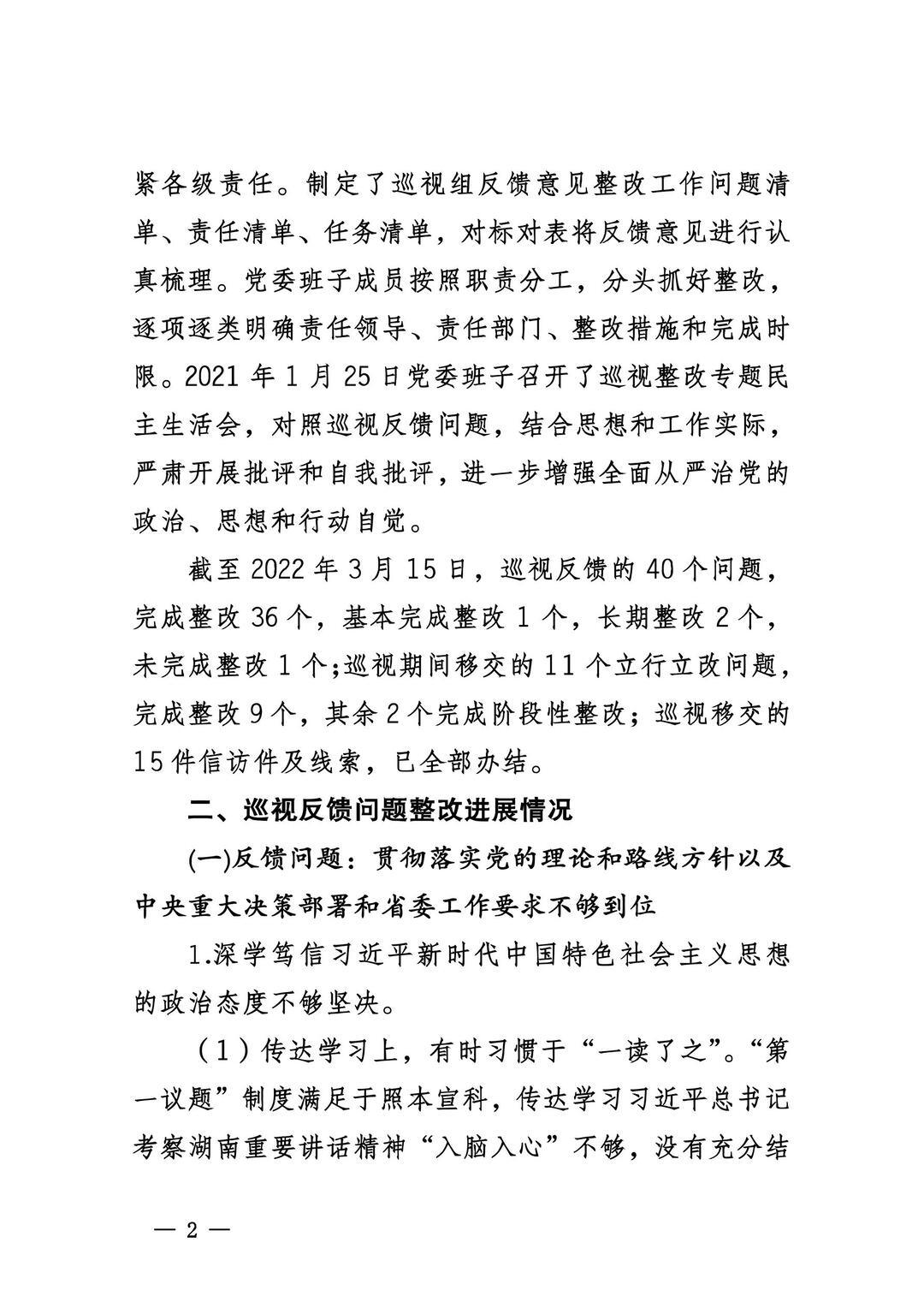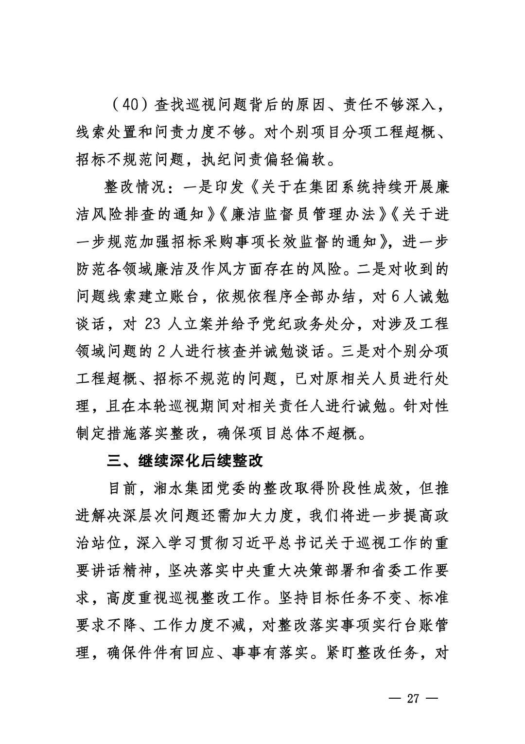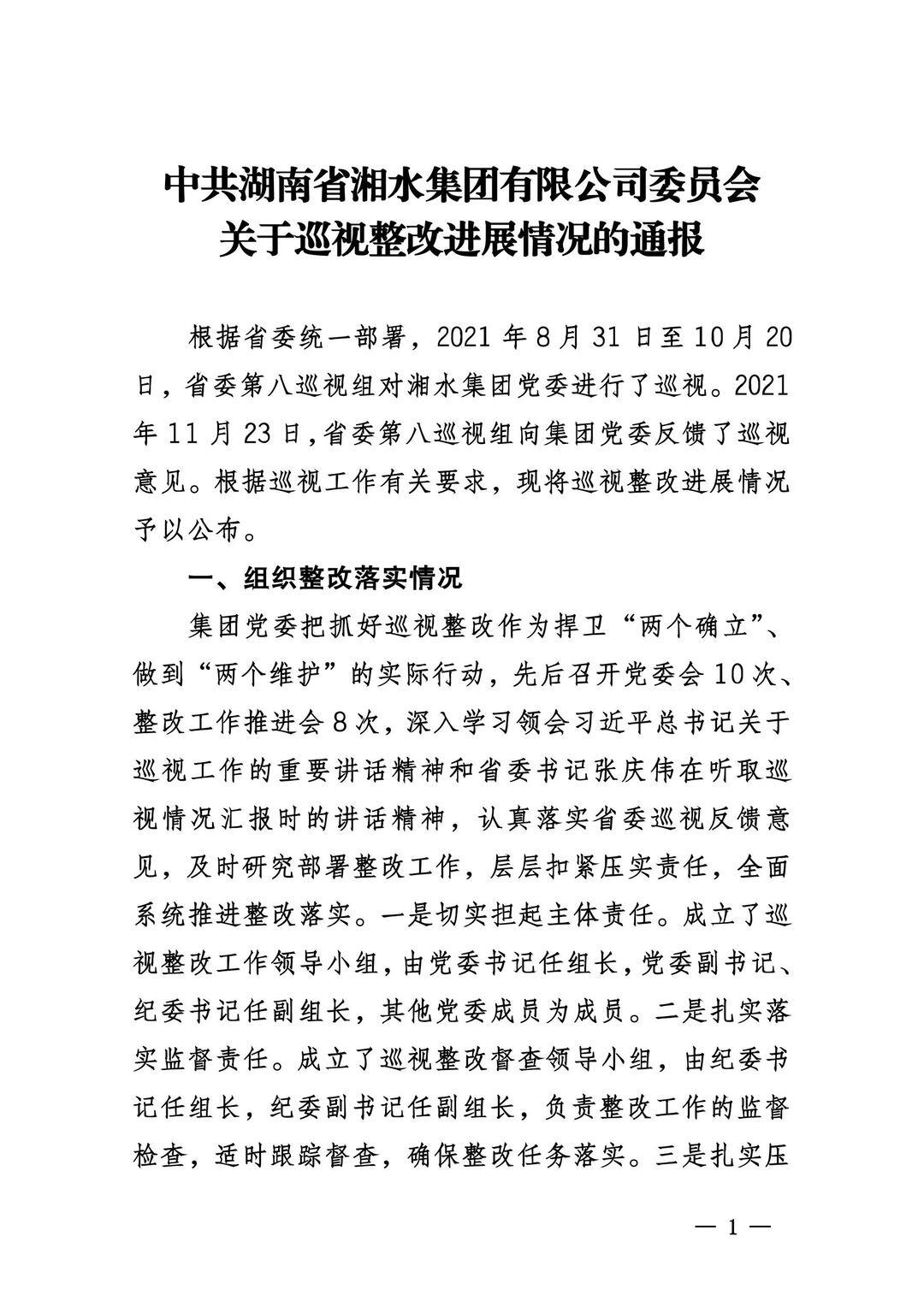 中共湖南省6766澳门有限公司委员会关于巡视整改进展情况的通报