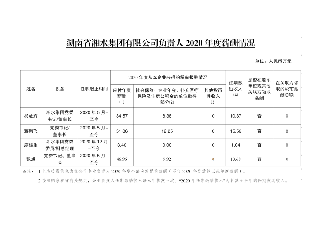 湖南省6766澳门有限公司负责人2020年度薪酬情况