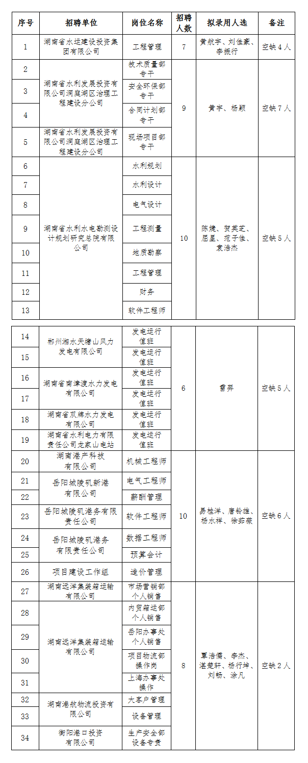 湖南省6766澳门有限公司2022年夏季招聘拟录用人员公示