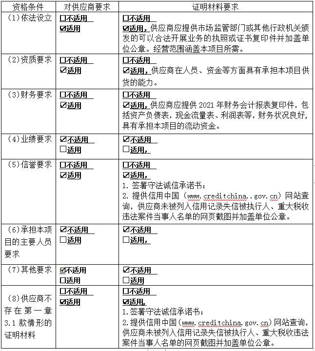 3.2供应商应满足如下要求:
