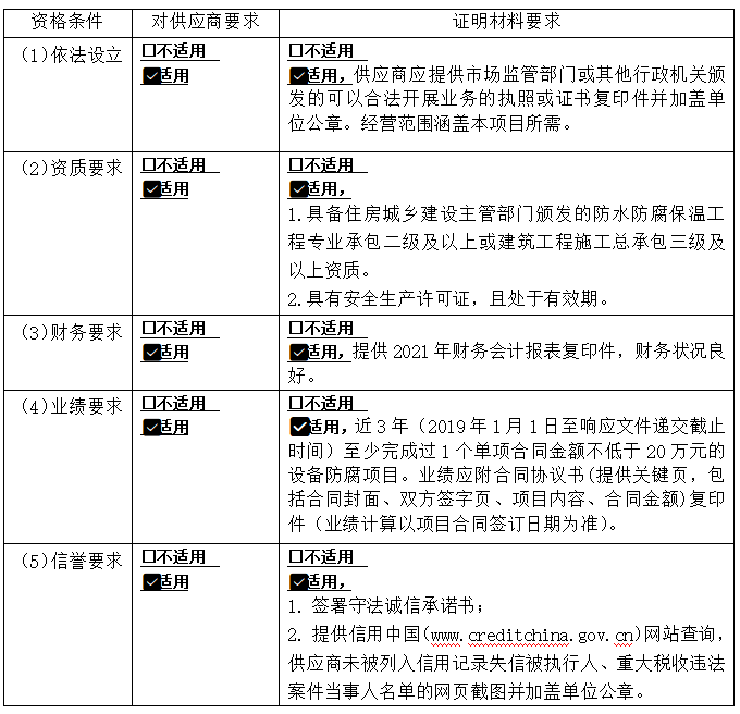 3  供应商资格要求